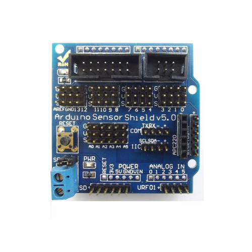 Amplía las capacidades de tu placa Arduino con el Sensor Shield V5.0. Este versátil shield (escudo) proporciona una plataforma de expansión que simplifica la conexión de diversos sensores y módulos a tu proyecto. Con múltiples puertos y conectores, el Sensor Shield V5.0 es la solución ideal para simplificar y organizar tus conexiones, permitiéndote concentrarte en la creatividad de tus proyectos sin la complejidad de cableado. Descubre un mundo de posibilidades con el Sensor Shield V5.0 para Arduino.
