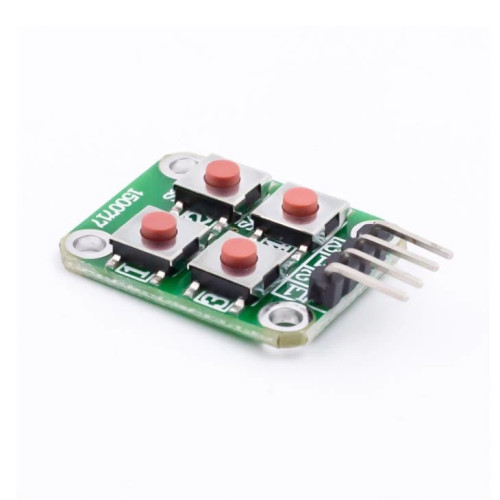 El Módulo de 4 Botones es una tarjeta electrónica compacta que integra cuatro interruptores táctiles (botones) diseñados para interactuar con microcontroladores, placas de desarrollo y otros dispositivos electrónicos. Con este módulo, los usuarios pueden fácilmente agregar capacidades de entrada a sus proyectos, permitiéndoles ejecutar comandos, seleccionar opciones o controlar dispositivos a través de simples pulsaciones.
