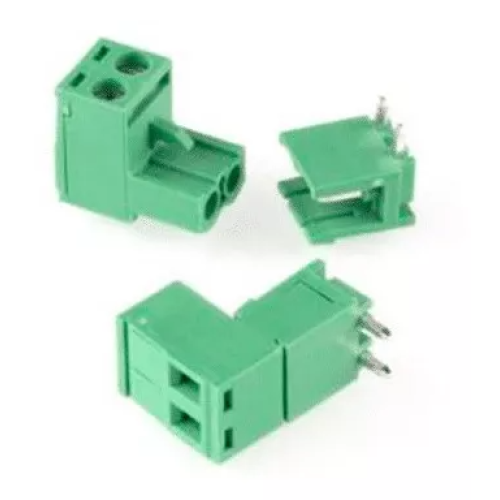Una bornera de 2 canales acodada para circuito impreso es un componente eléctrico diseñado para facilitar la conexión de cables a una placa de circuito impreso (PCB) de forma segura y organizada. Esta bornera tiene dos canales, lo que significa que puede conectar hasta dos cables o conductores. La forma acodada significa que los pines de conexión están dispuestos en ángulo, lo que permite un montaje más compacto y eficiente en la PCB.